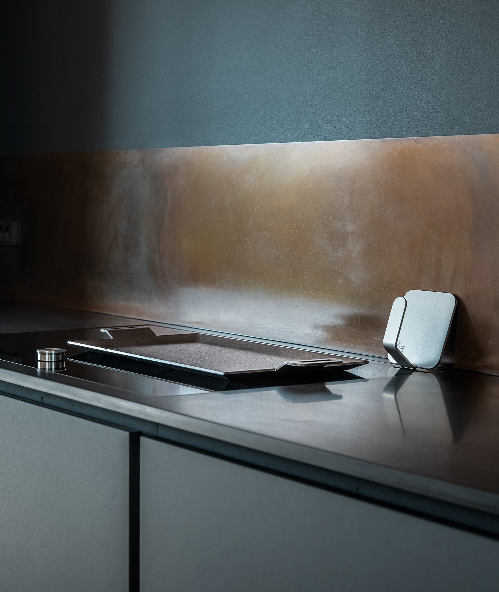 Of course, you don't want to start a grease fire at home, which is why our griddle has bevelled edges, just like a frying pan. In fact, the plate can hold more than a litre of liquid. The sides are folded up to prevent spillage. In addition to trapping the fat, the bevelled sides also make it possible to boil a small amount of water on the surface of the griddle, making thorough cleaning of the griddle easy.