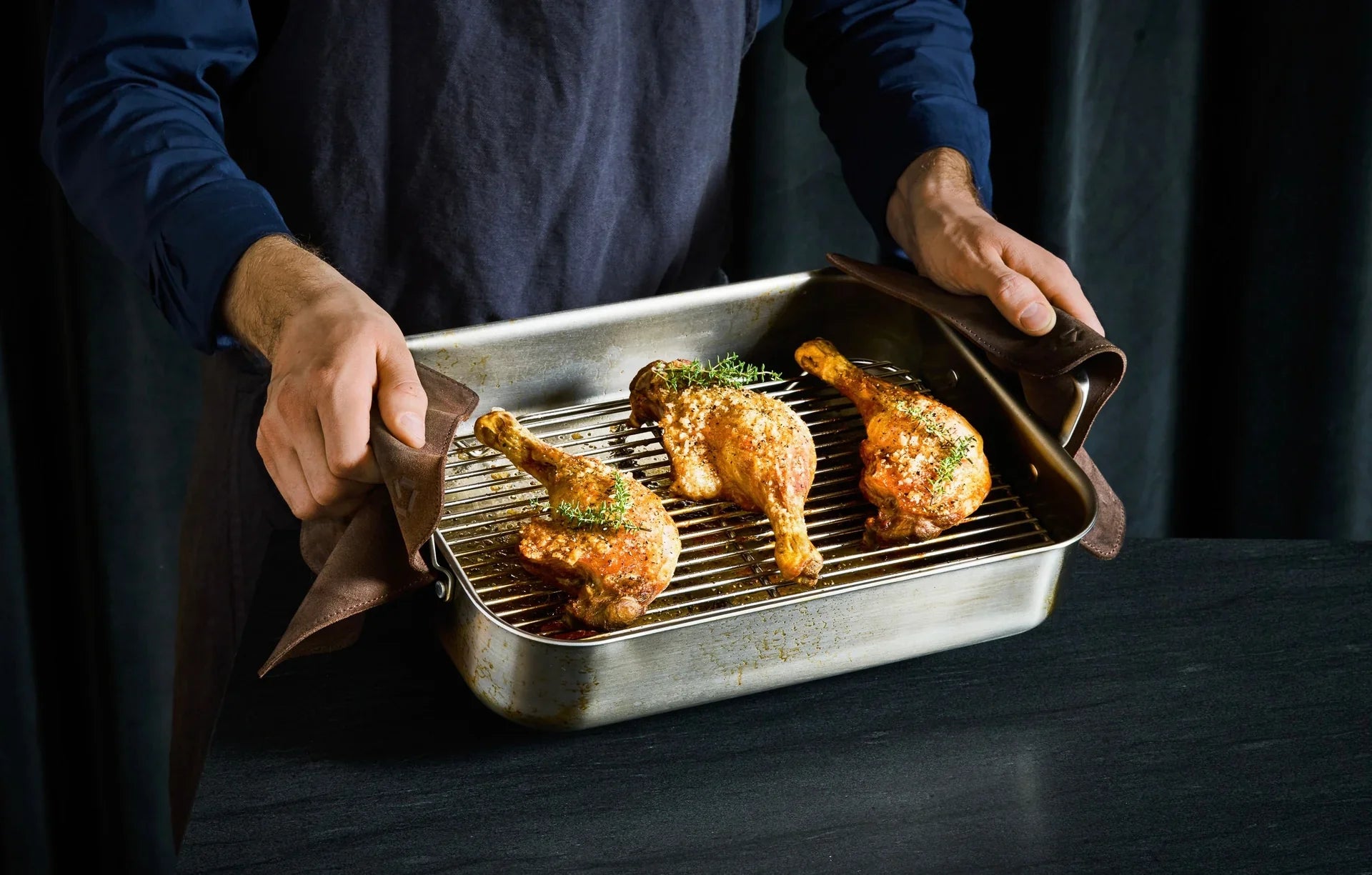 Our roasting pan is made from 5 layers of stainless steel and aluminium for exceptional thermal conductivity and durability. The ergonomic handle makes it easy to handle the roasting pan, even when it's heavy. Handmade in Italy with over 130 years of expertise, our roasting pan combines timeless Danish design with Italian craftsmanship of the highest quality.