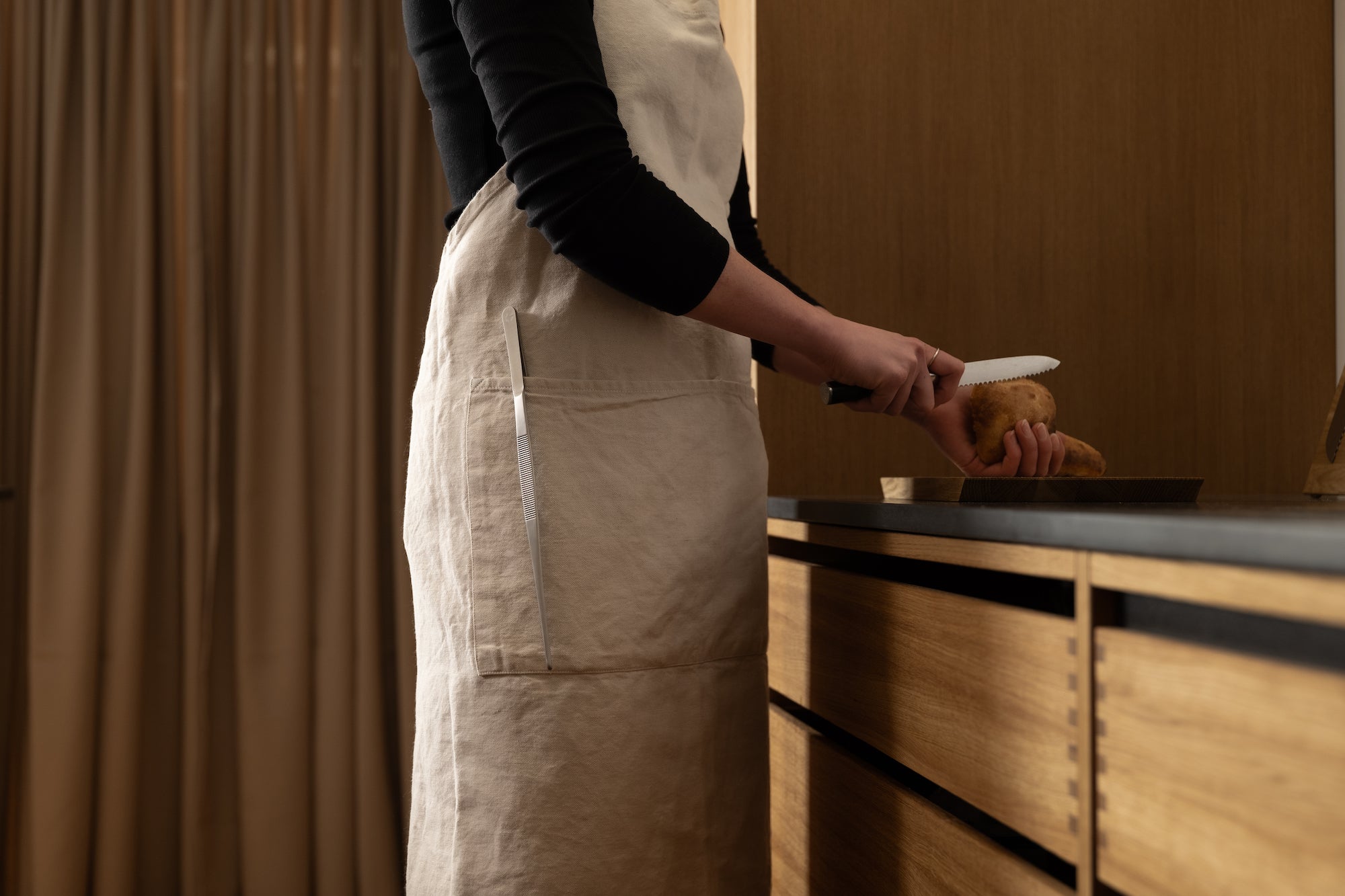 Durable apron in linen blend, which is both comfortable to wear and protects your clothes from splashes and stains. Created based on over 150 years of craftsmanship experience.