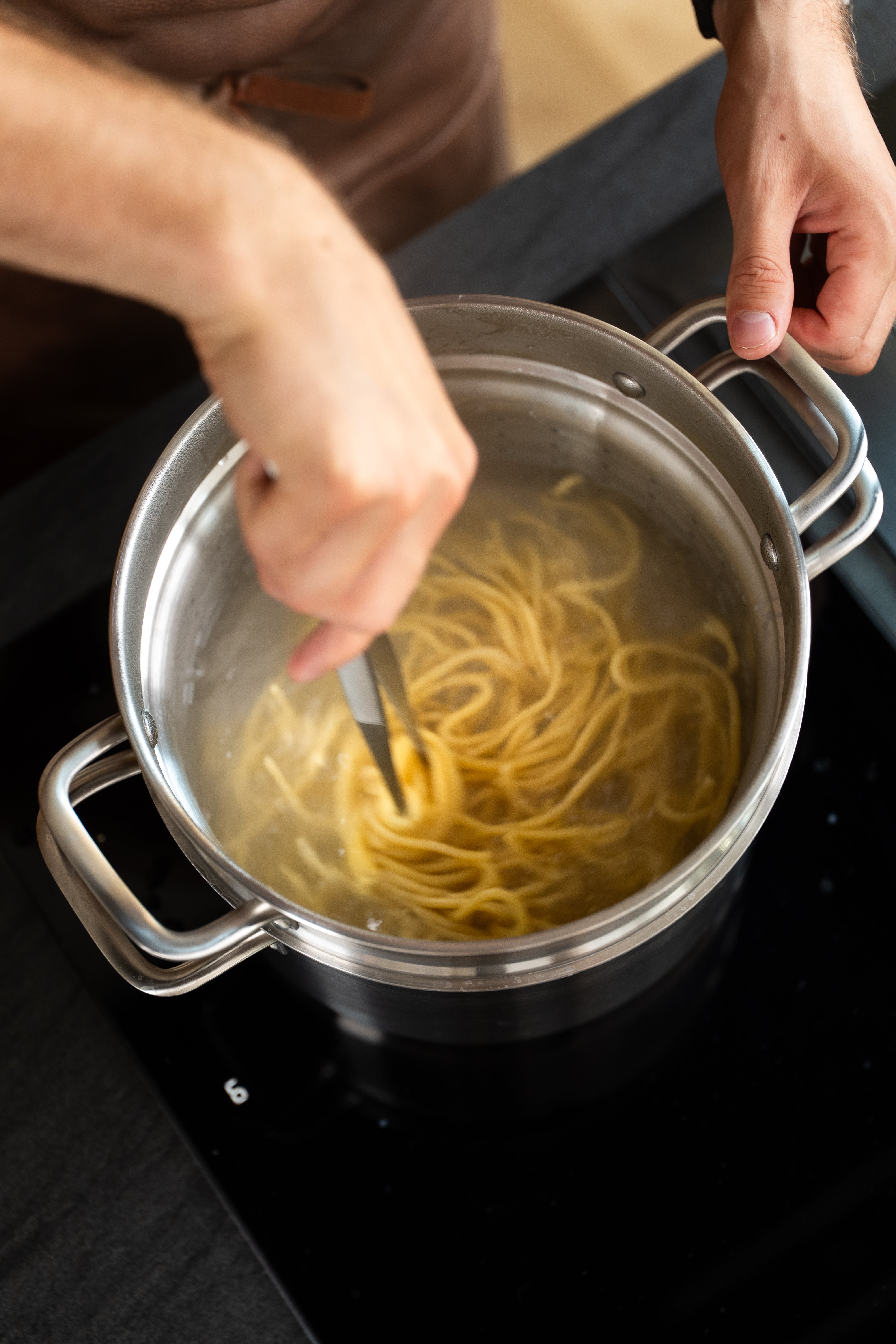You get effective heat control thanks to the aluminium core, which has excellent heat conductivity and allows you to quickly raise or lower the temperature in the pot. Unlike cookware with a sandwich base, you will find that the heat spreads naturally up the sides of the pan because the entire pan is made of 5-ply – ideal for dishes such as risotto and simmering dishes. The pasta insert is designed to cook perfect pasta without the hassle of pouring boiling pasta water from the pan, which often results in pasta in the sink or boiling water on the hob. The sturdy handles on the insert make it easy to lower it into boiling water without burning yourself, and just as easy to lift the insert out when the food is ready. But the insert isn't just for pasta: use it to blanch asparagus, cook potatoes or boil large quantities of eggs.