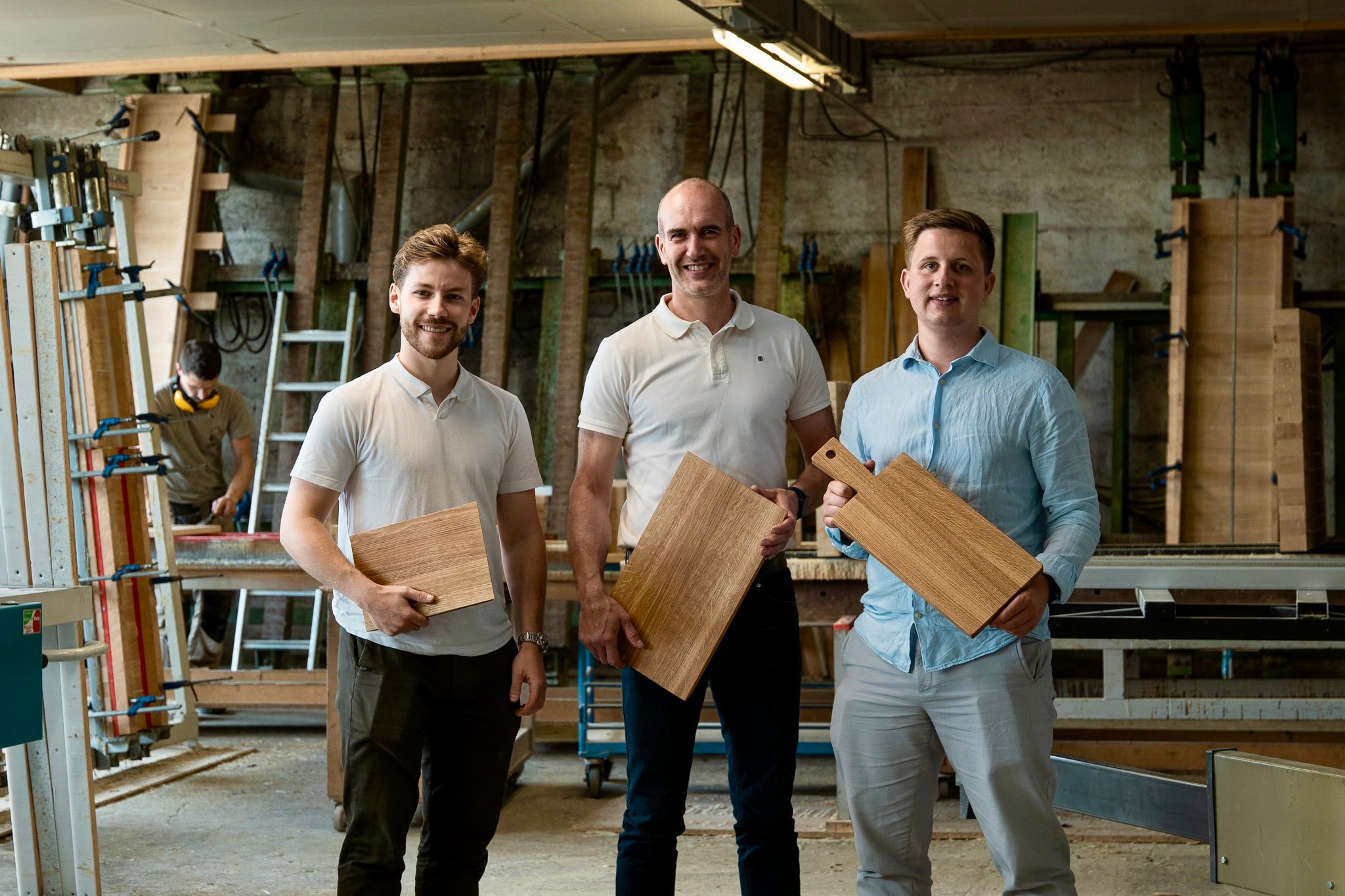 Elegant cutting board with juice groove, made from solid FSC-certified oak sourced from French forests - produced by a family business south of Lyon.