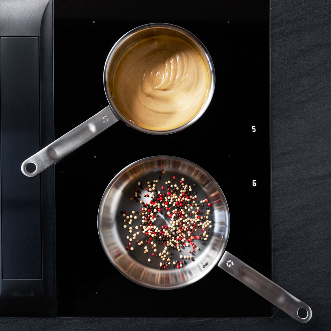 Enjoy precise heat control thanks to its aluminium core, which offers excellent heat conduction and allows you to quickly adjust the temperature. Unlike cookware with an attached sandwich base, the heat naturally spreads up the sides because both the base and walls are made from 5-ply construction – ideal for dishes like risotto and slow-cooked meals.