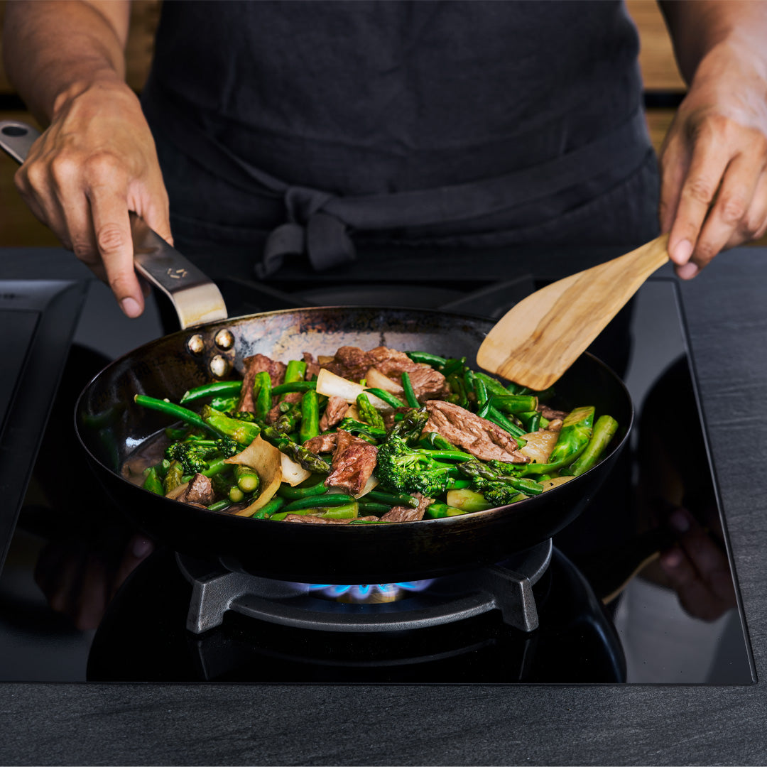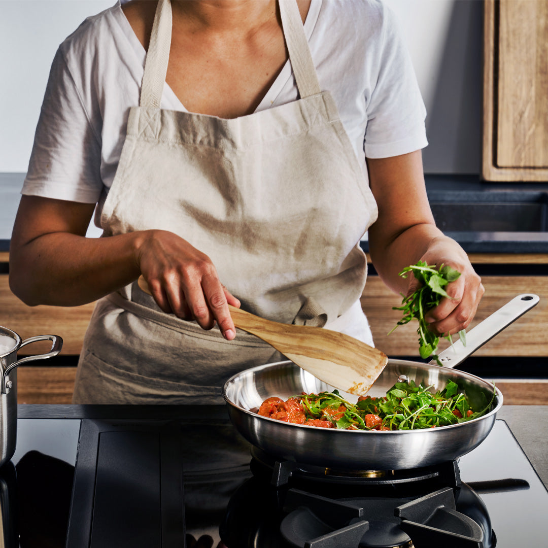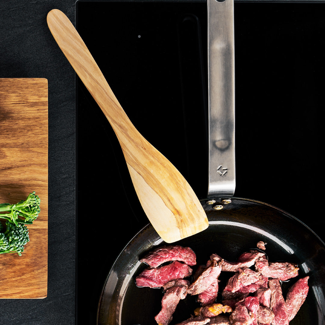 Experience genuine French craftsmanship with this 30 cm wooden spatula in olive wood. Perfectly curved for ergonomic cooking and serving. The wooden spatula is ideal for fried vegetables, sauces, fish, and meat, while protecting your pots and pans. The dense fibers and natural antibacterial properties of olive wood make it not only hygienic but also durable and resilient. Treated with beeswax, the spatula maintains its quality over time and use – a must-have in any kitchen from a French manufacturer specializing in wooden craft products since 1892. With its natural appearance and timeless design, it's an authentic addition to any kitchen.